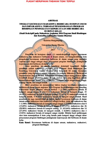Mangampang, Katerina (2017) Tingkat kecemasan mahasiswa berbicara di depan umum dan implikasinya terhadap pengembangan program bimbingan peningkatan kepercayaan diri berbicara di depan kelas (studi deskriptif pada mahasiswa angkatan 2016 Program Studi Bimbingan dan Konseling Universitas Sanata Dharma). Skripsi thesis, Sanata Dharma University.